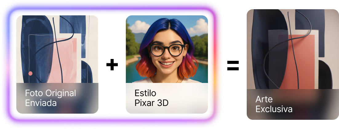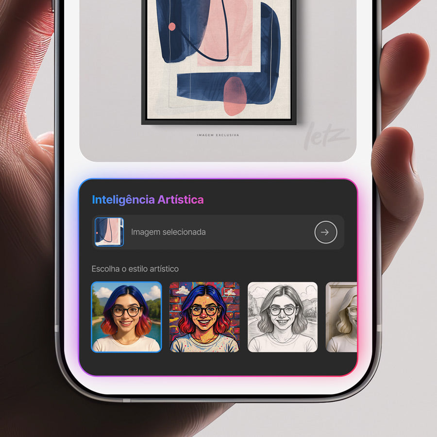 Peças ganham nova vida com o estilo artístico selecionado. Aproveite a Inteligência Artística para renovar sua decoração com obras únicas e exclusivas que transcendem o tempo.