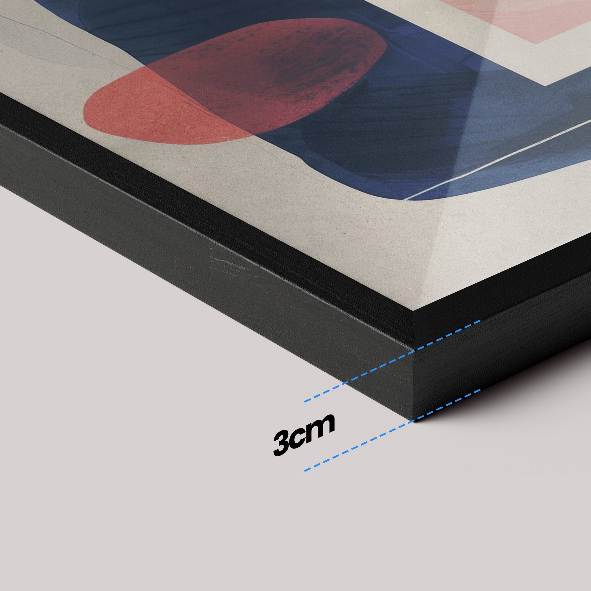 Moldura fina (0,85 cm × 2 cm), fundo em MDF e impressão em vinil fosco de alta resolução com tinta látex ecológica. Com ou sem vidro. Pronta para pendurar.