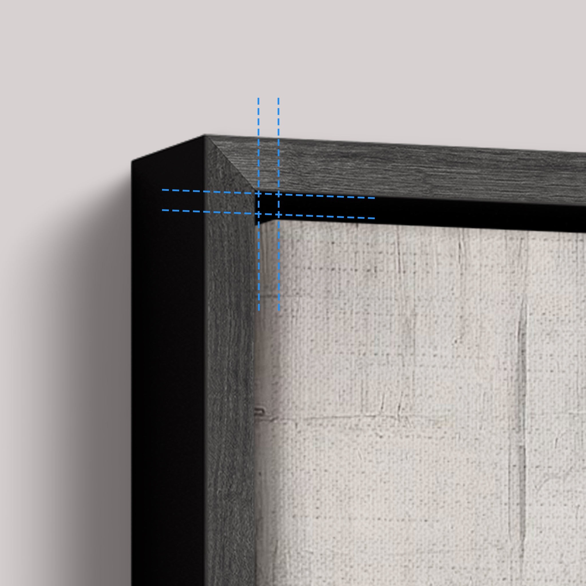 Detalhes cuidadosos entre o canvas e a moldura proporcionam profundidade e elegância.