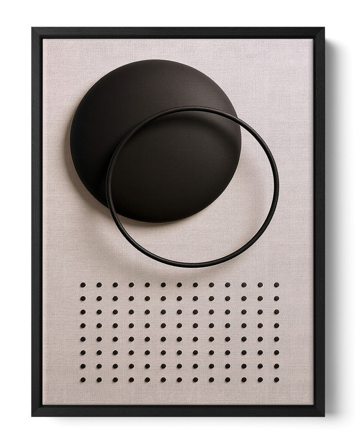 A Moldura Caixa confere profundidade, ideal para destacar formas abstratas e harmônicas no ambiente.