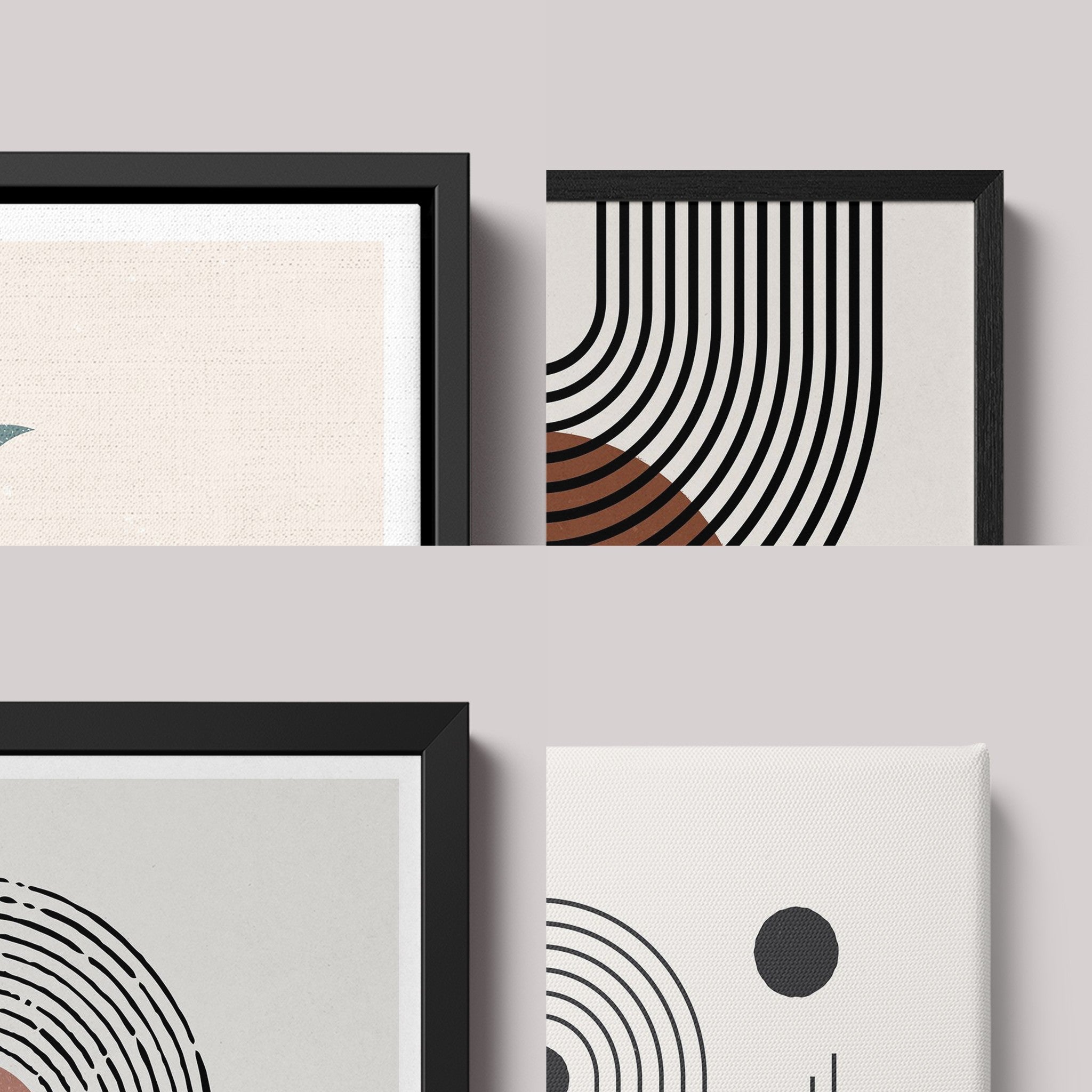 Detalhes entre canvas e moldura criam profundidade, enriquecendo o visual dos quadros.