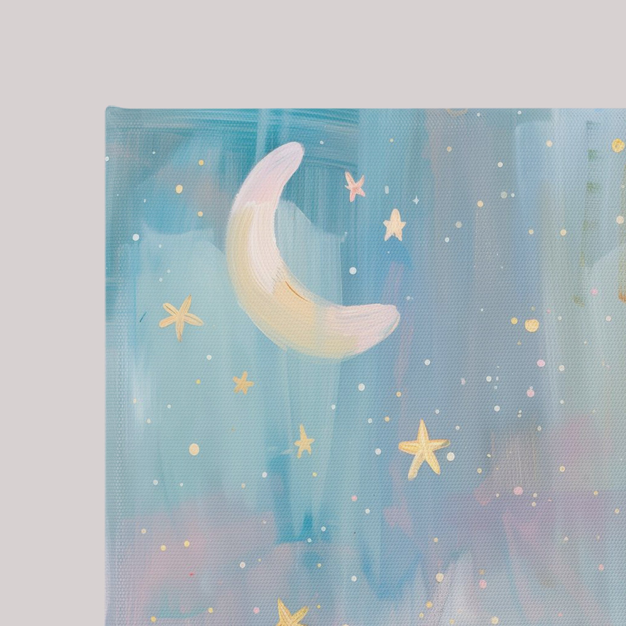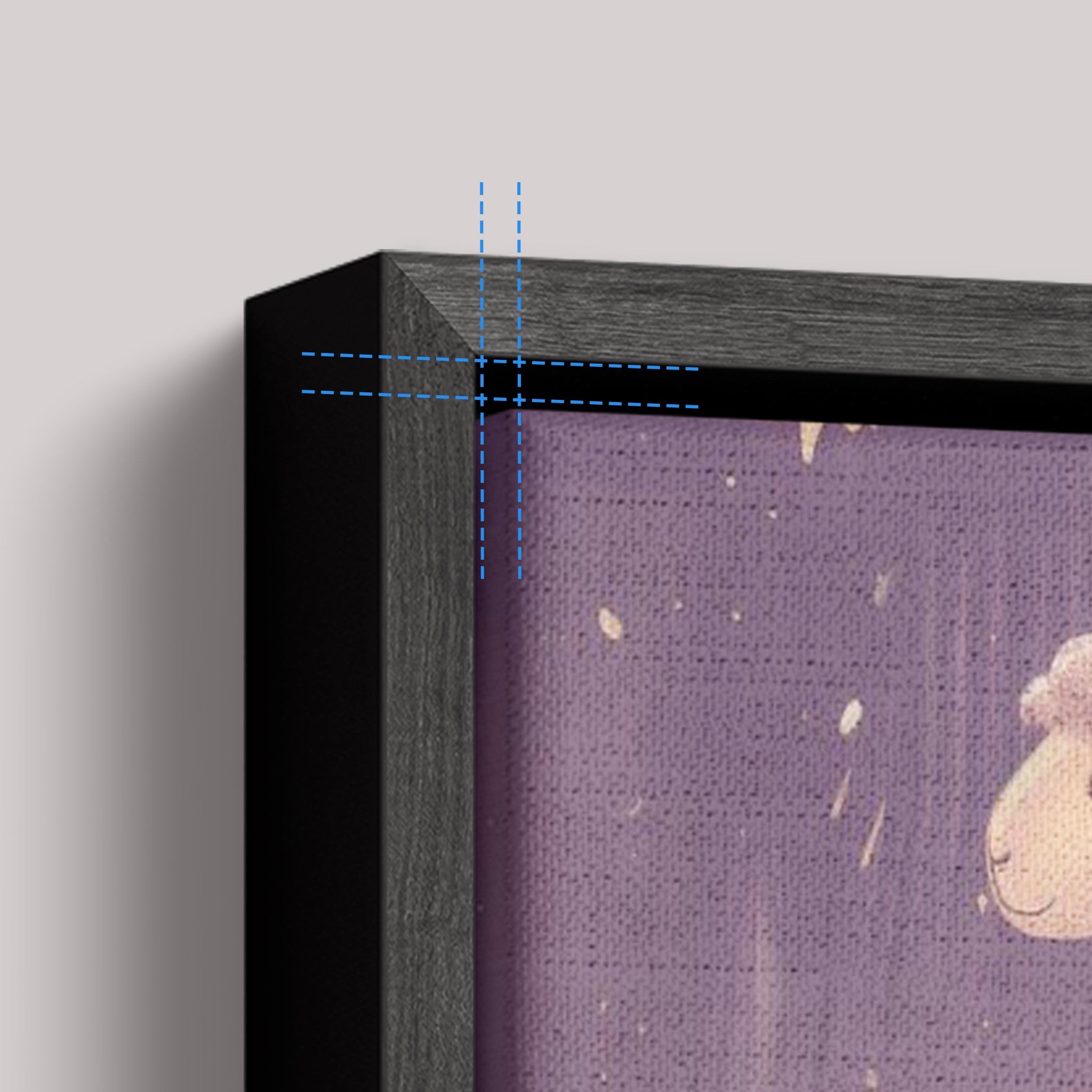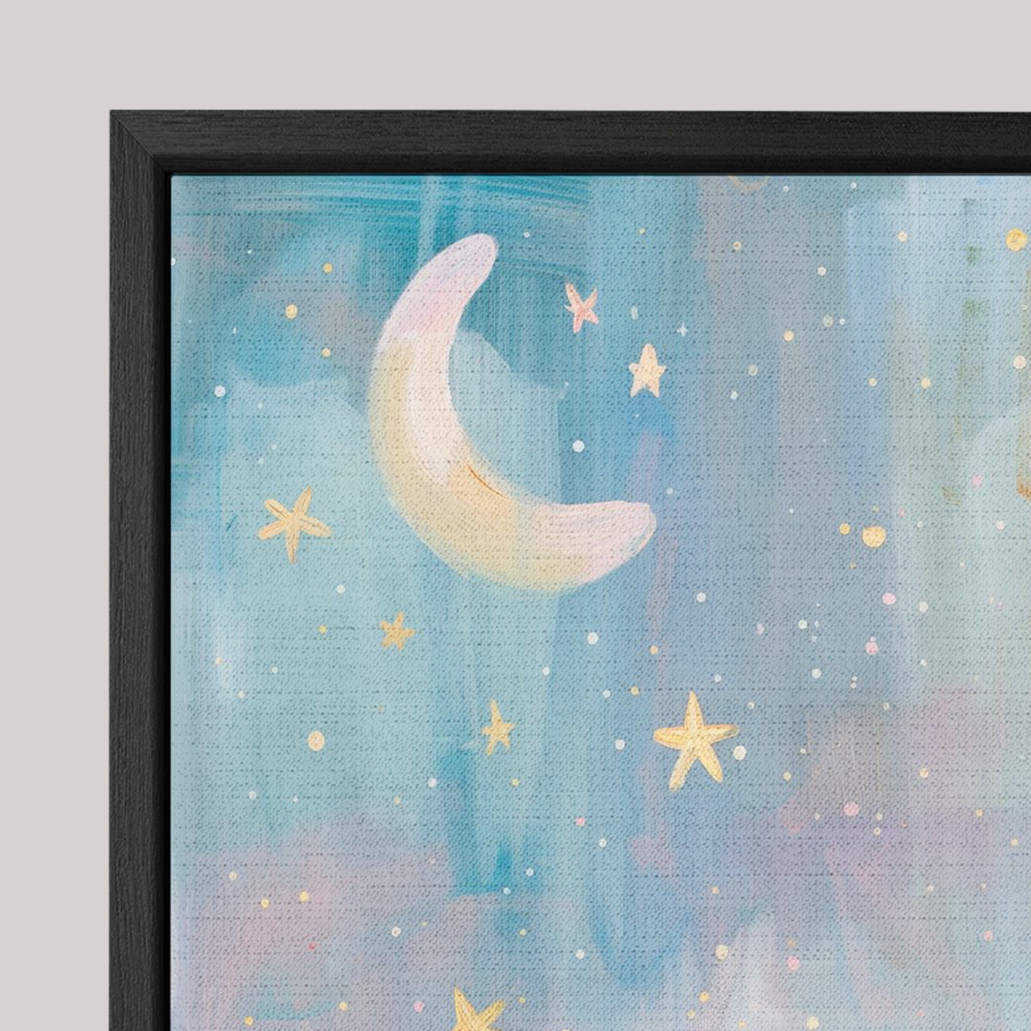 Acabamento com um toque leve mas marcante nos encontros do canvas e molduras, refinando a beleza singela do mundo infantil.