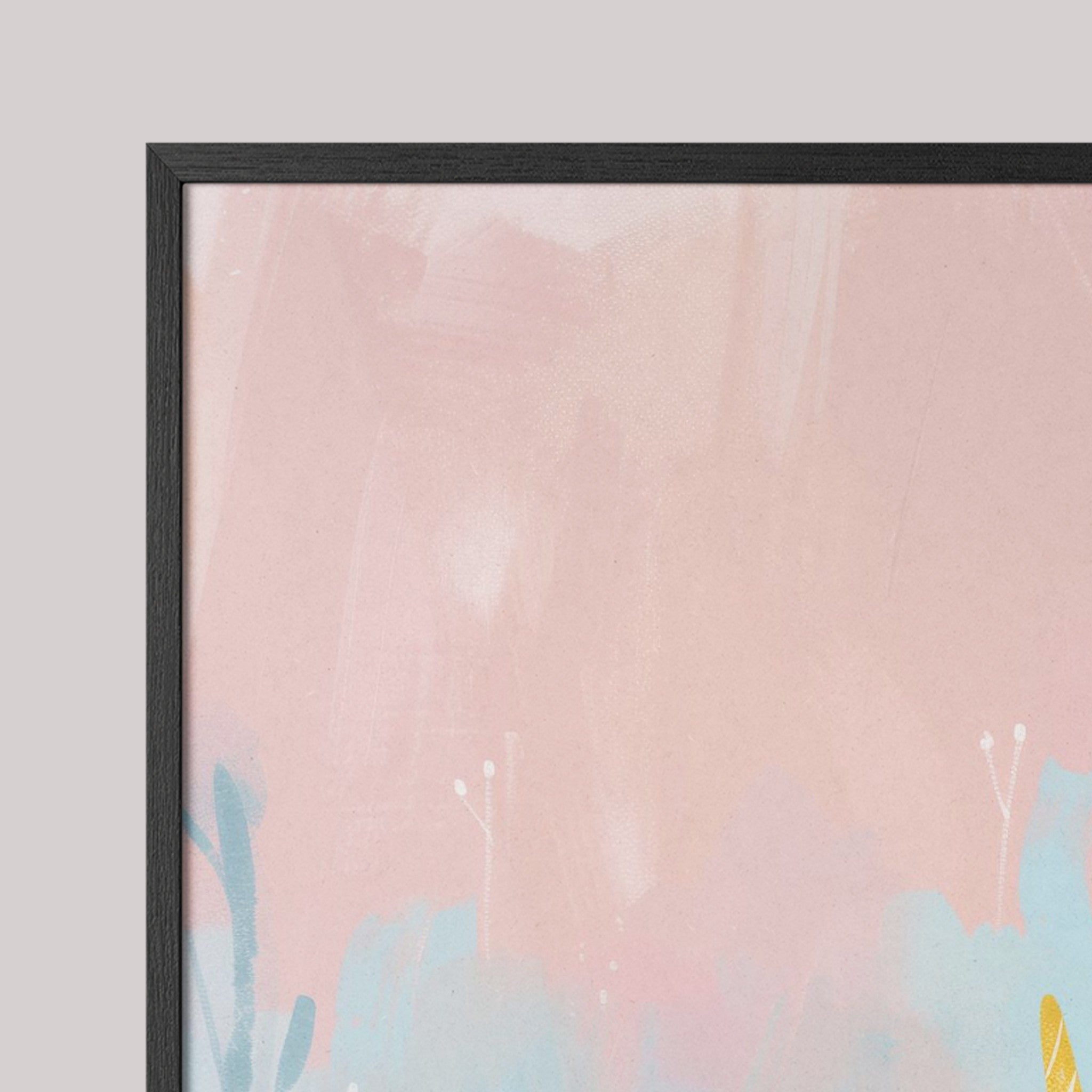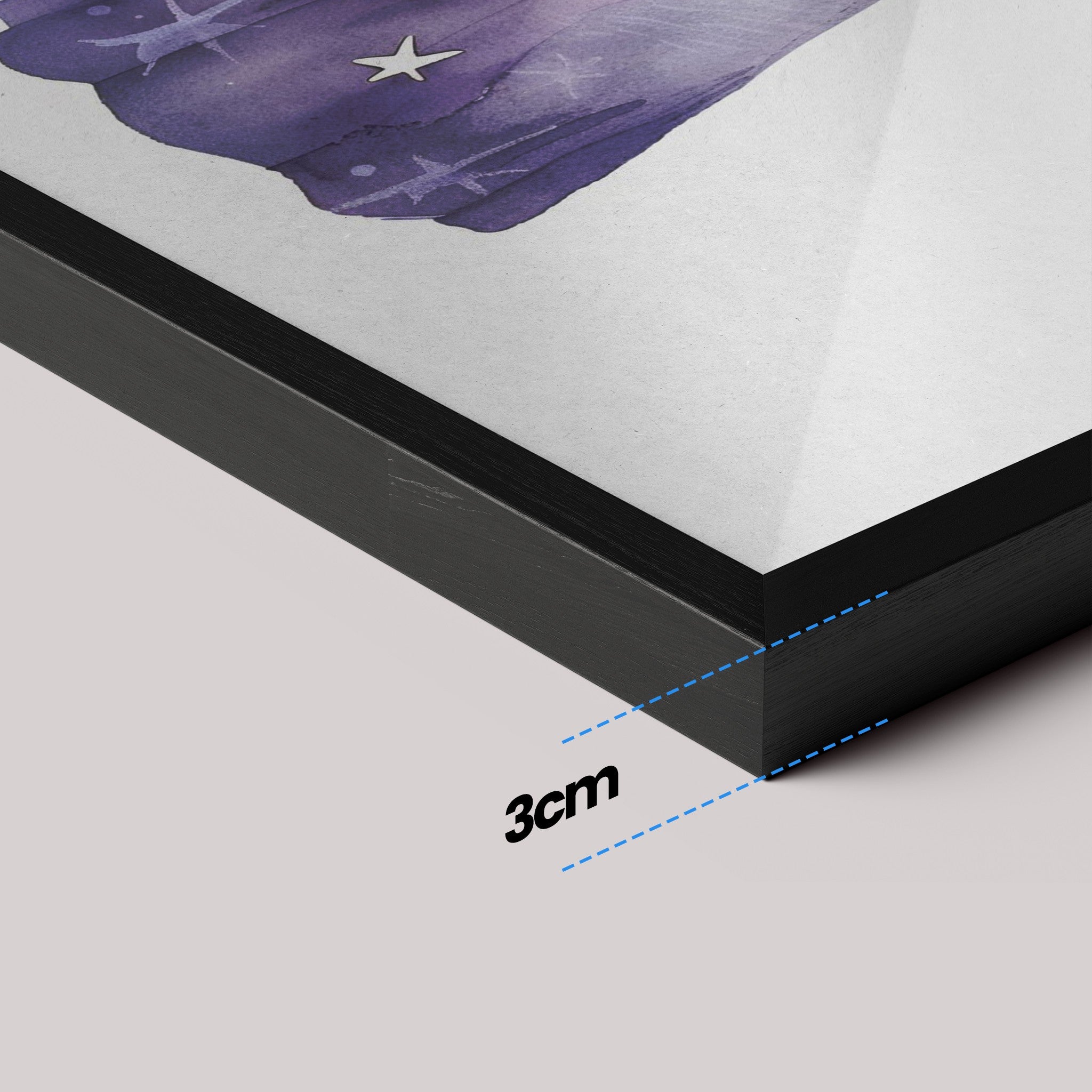 Moldura fina (0,85 cm × 2 cm), fundo em MDF e impressão em vinil fosco de alta resolução com tinta látex ecológica. Com ou sem vidro. Pronta para pendurar.