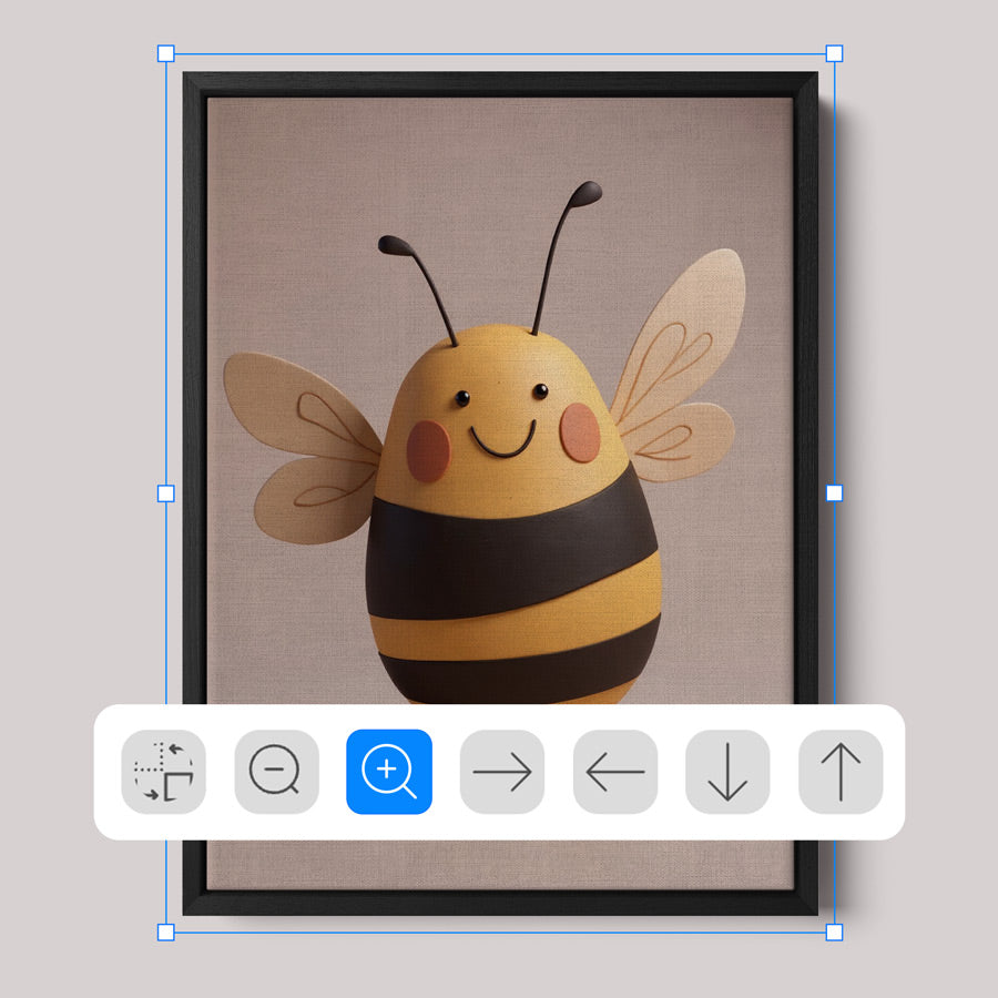 Moldura fina (0,85 cm × 2 cm), fundo em MDF e impressão em vinil fosco de alta resolução com tinta látex ecológica. Com ou sem vidro. Pronta para pendurar.
