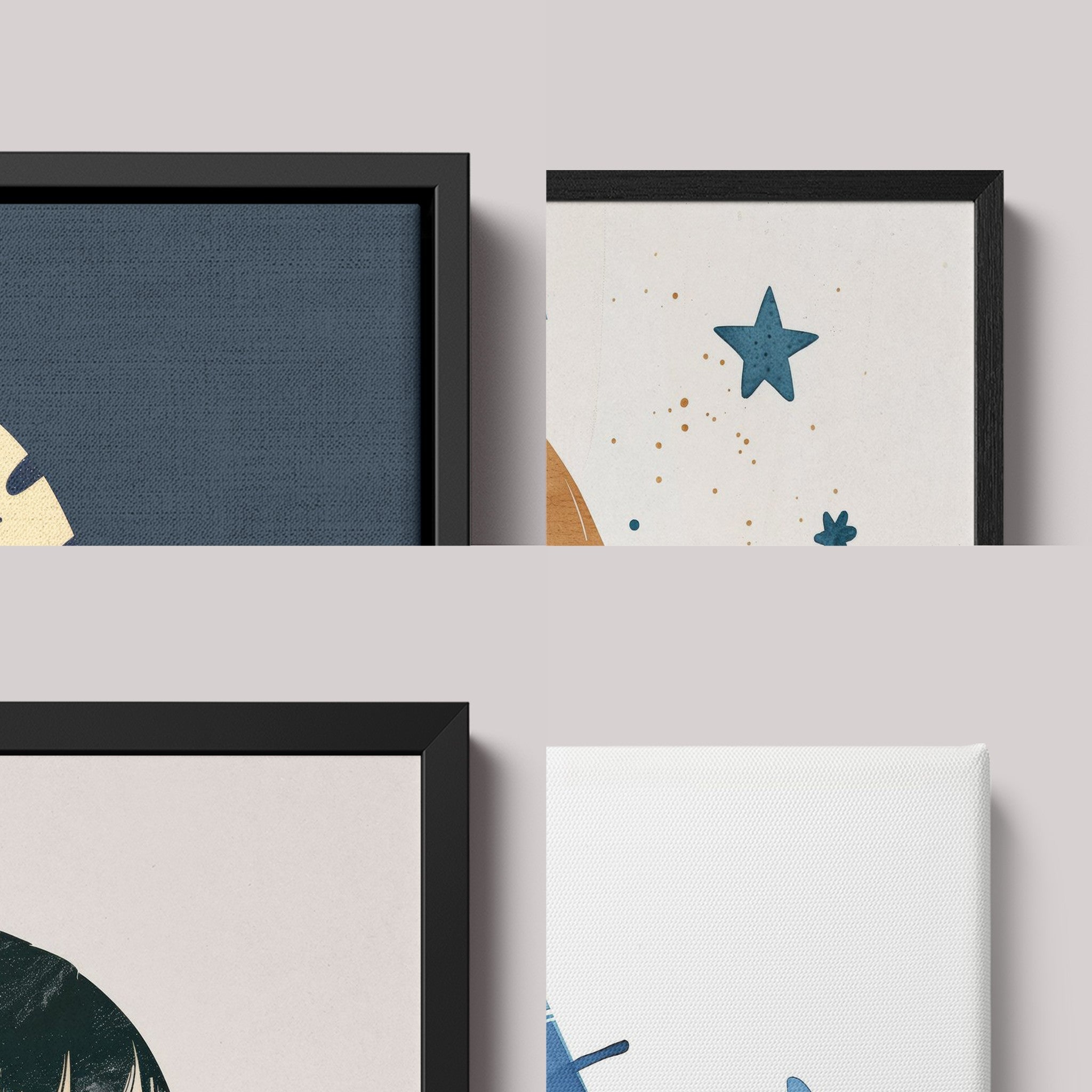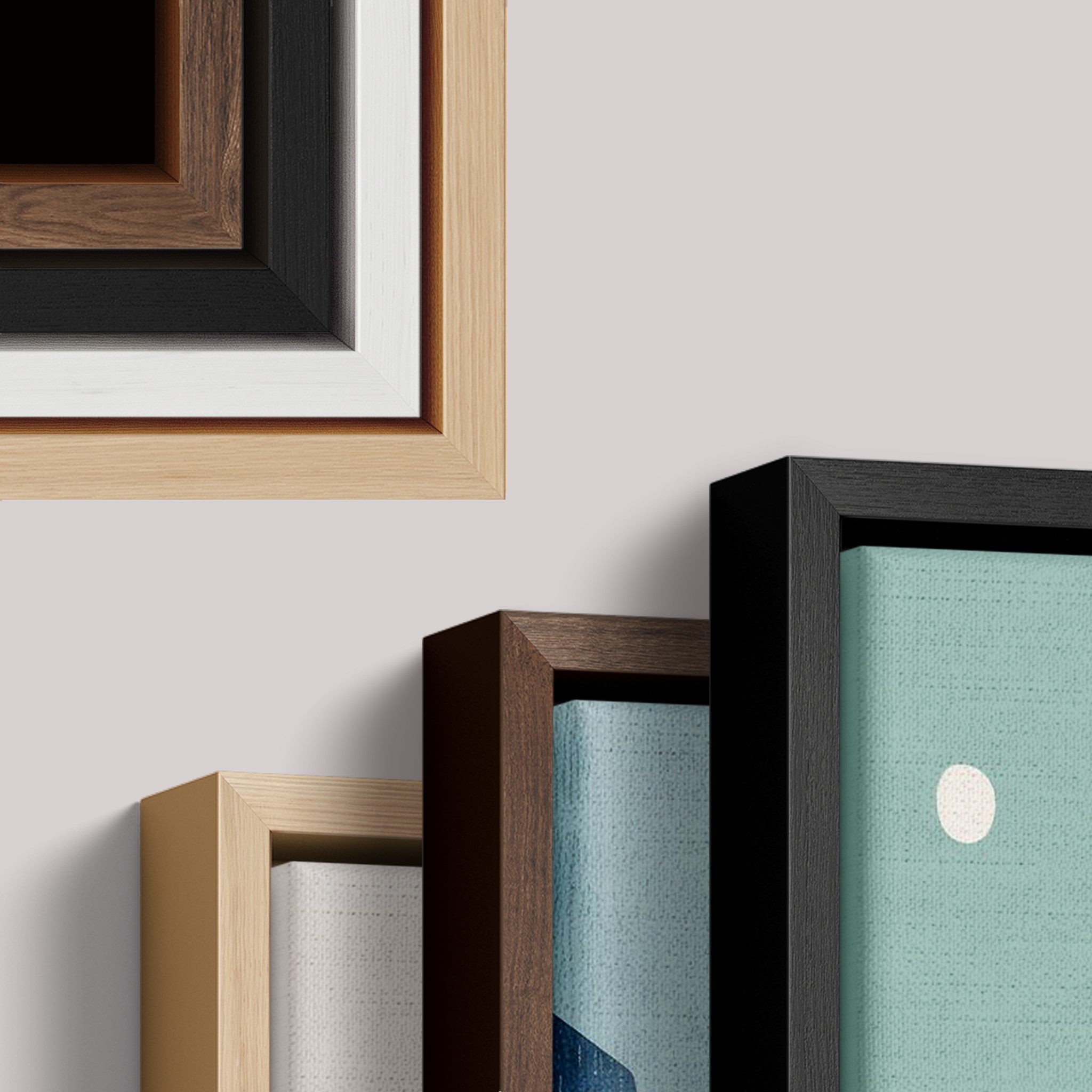 Escolha entre molduras Caixa, Flutuante, Filete ou estilo Canvas, todas confeccionadas com madeira ecológica e extrema atenção aos detalhes.