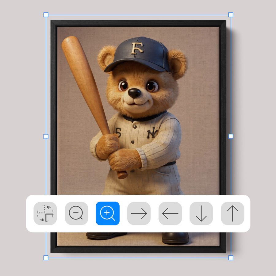 O estilo escolhido é aplicado diretamente na imagem enviada. A IA reinventa uma versão exclusiva para a coleção Baby Vintage, criando arte única para sua decoração.