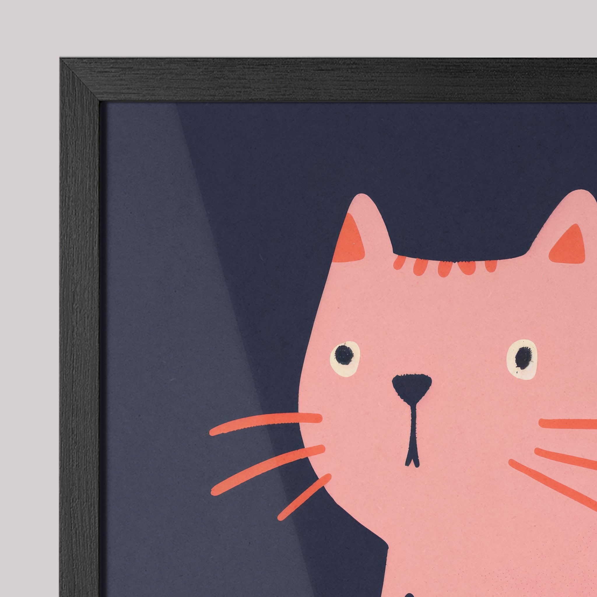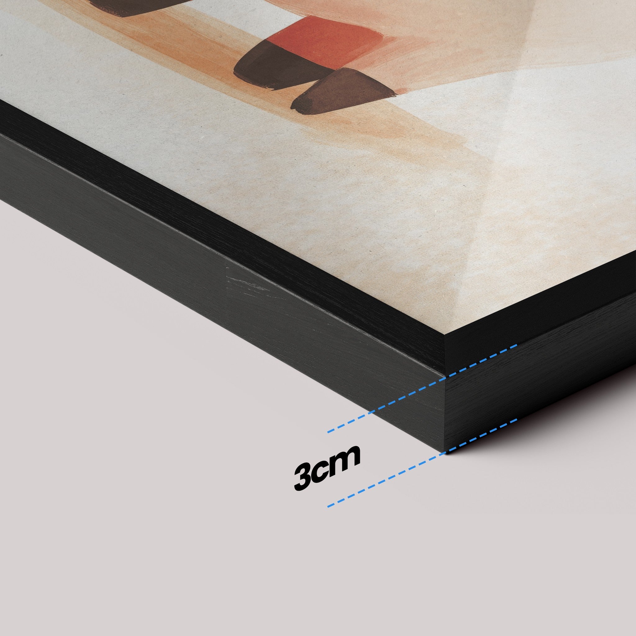 Moldura fina (0,85 cm × 2 cm), fundo em MDF e impressão em vinil fosco de alta resolução com tinta látex ecológica. Com ou sem vidro. Pronta para pendurar.