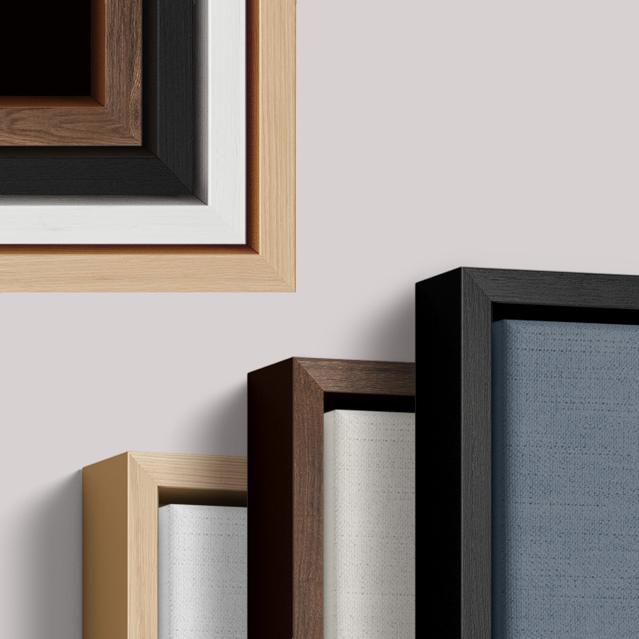 Escolha entre molduras em Caixa, Filete ou o clássico Canvas. Todas com acabamento premium feito em madeira 100% ecológica.