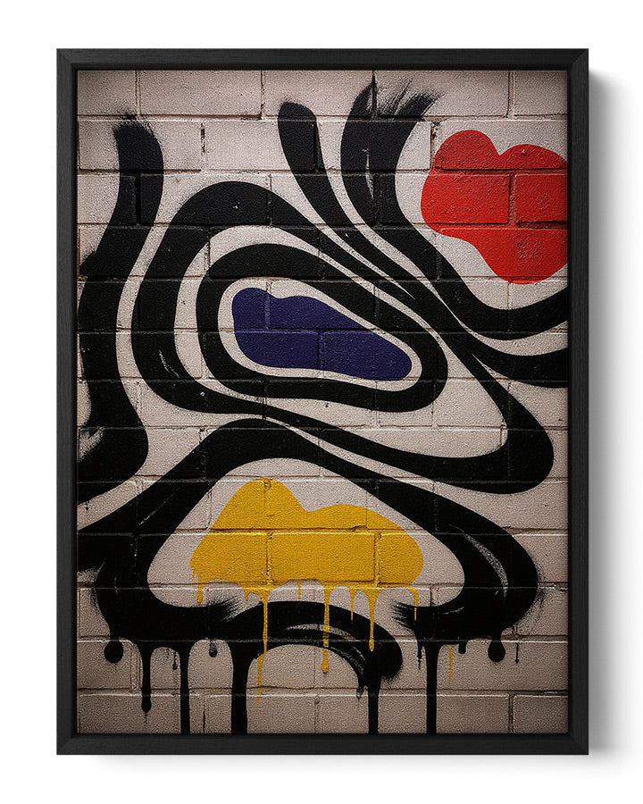 Detalhes finos entre moldura e canvas conferem profundidade e evidenciam cada nuance abstrata.