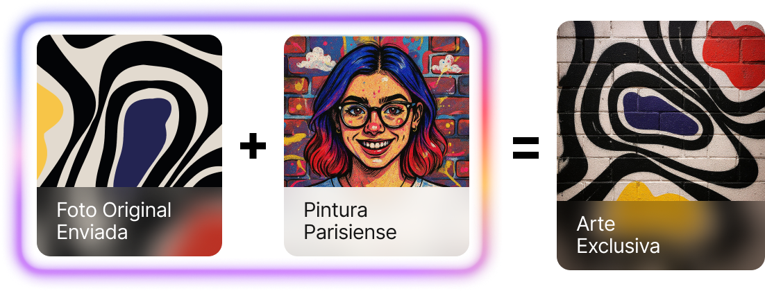 Selecione um estilo artístico e aplique diretamente na imagem enviada. A Inteligência Artística remodela cada peça em uma expressão exclusiva para suas paredes.