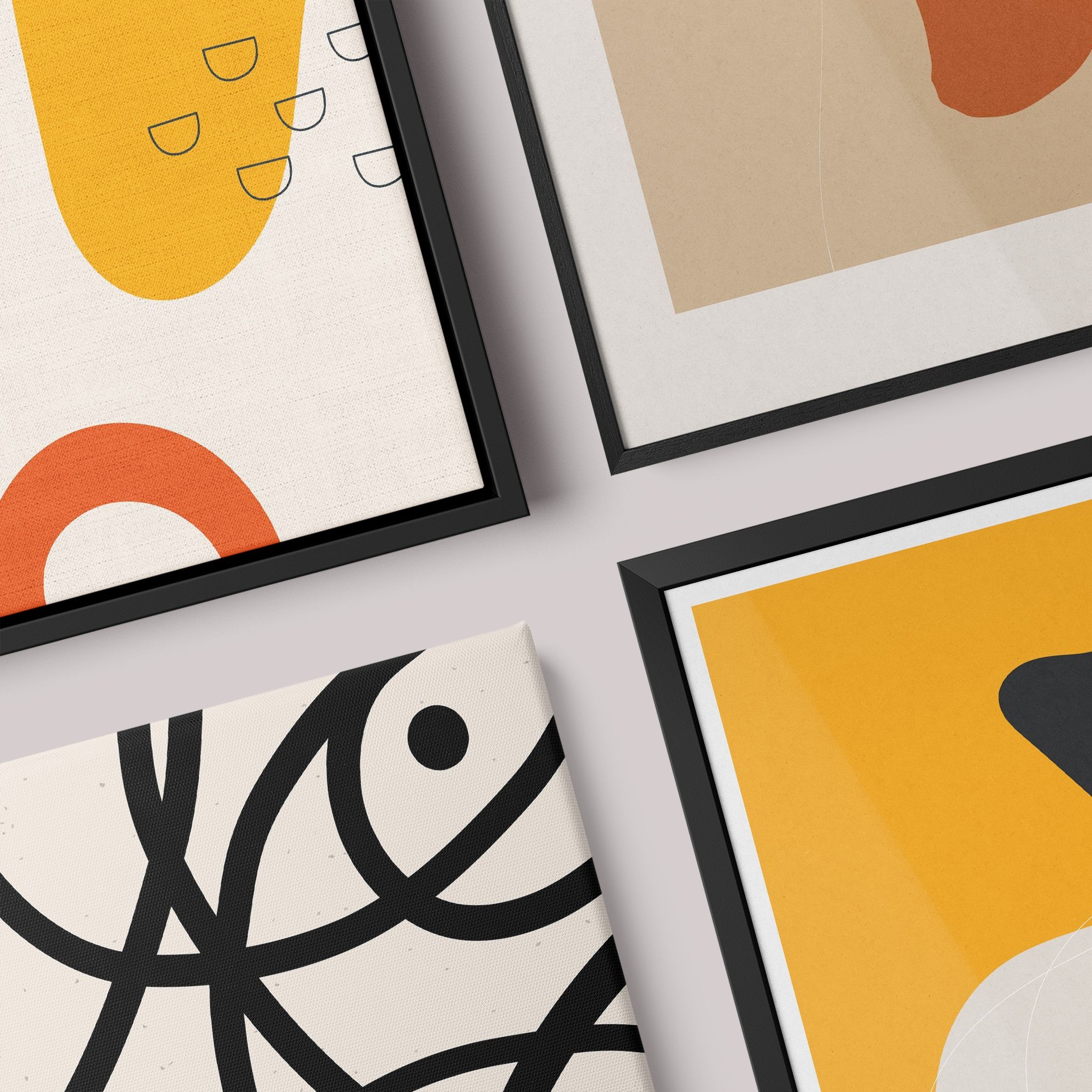 Nossas molduras são cuidadosamente feitas para trazer distinção e durabilidade a cada arte boho abstrata.