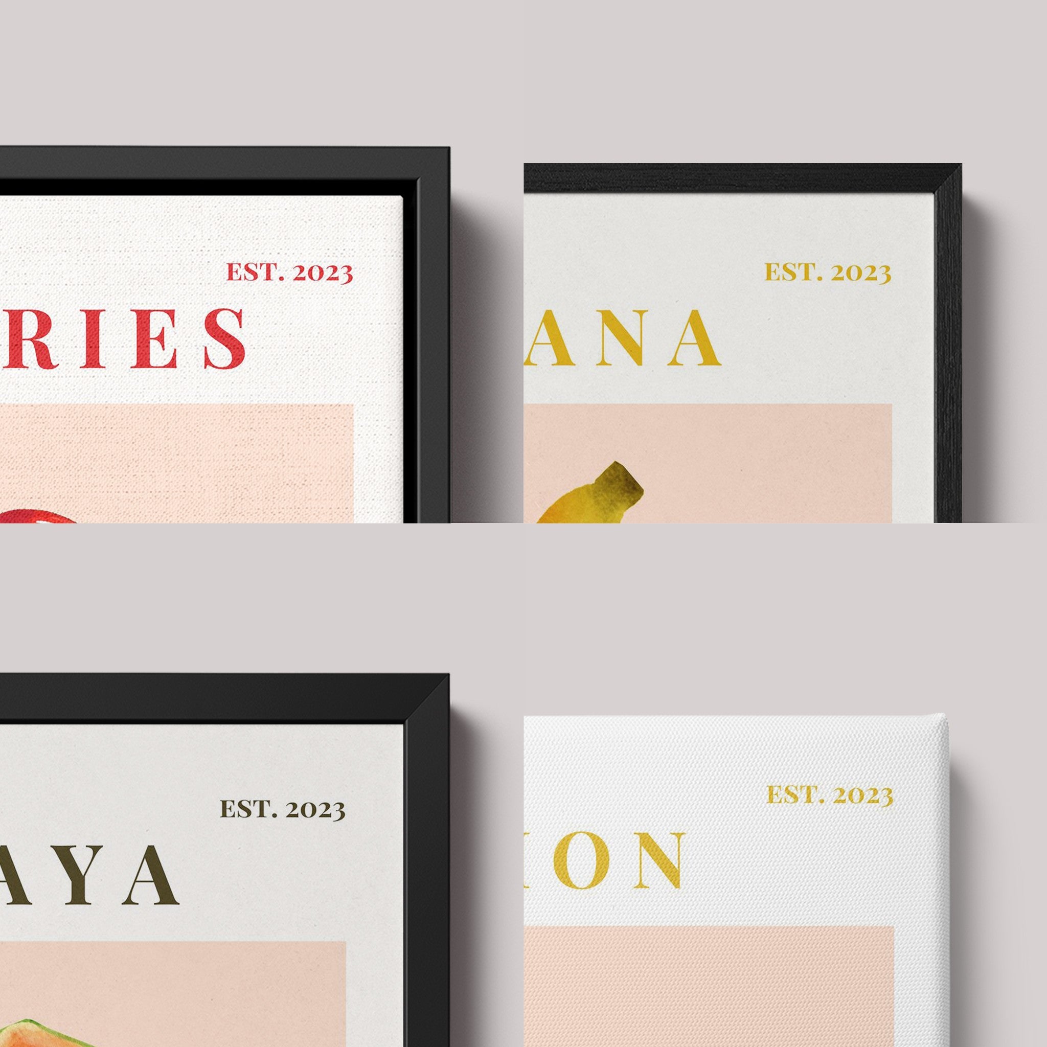 Crie quadros personalizados ao seu estilo! Transforme qualquer peça da coleção Frutas Vibrantes em uma arte única e exclusiva.