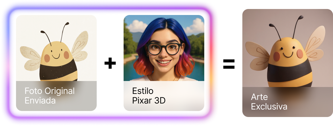 O estilo artístico escolhido é aplicado diretamente para criar uma versão exclusiva e renovada, transformando animais minimalistas em peças únicas e memoráveis para sua decoração.
